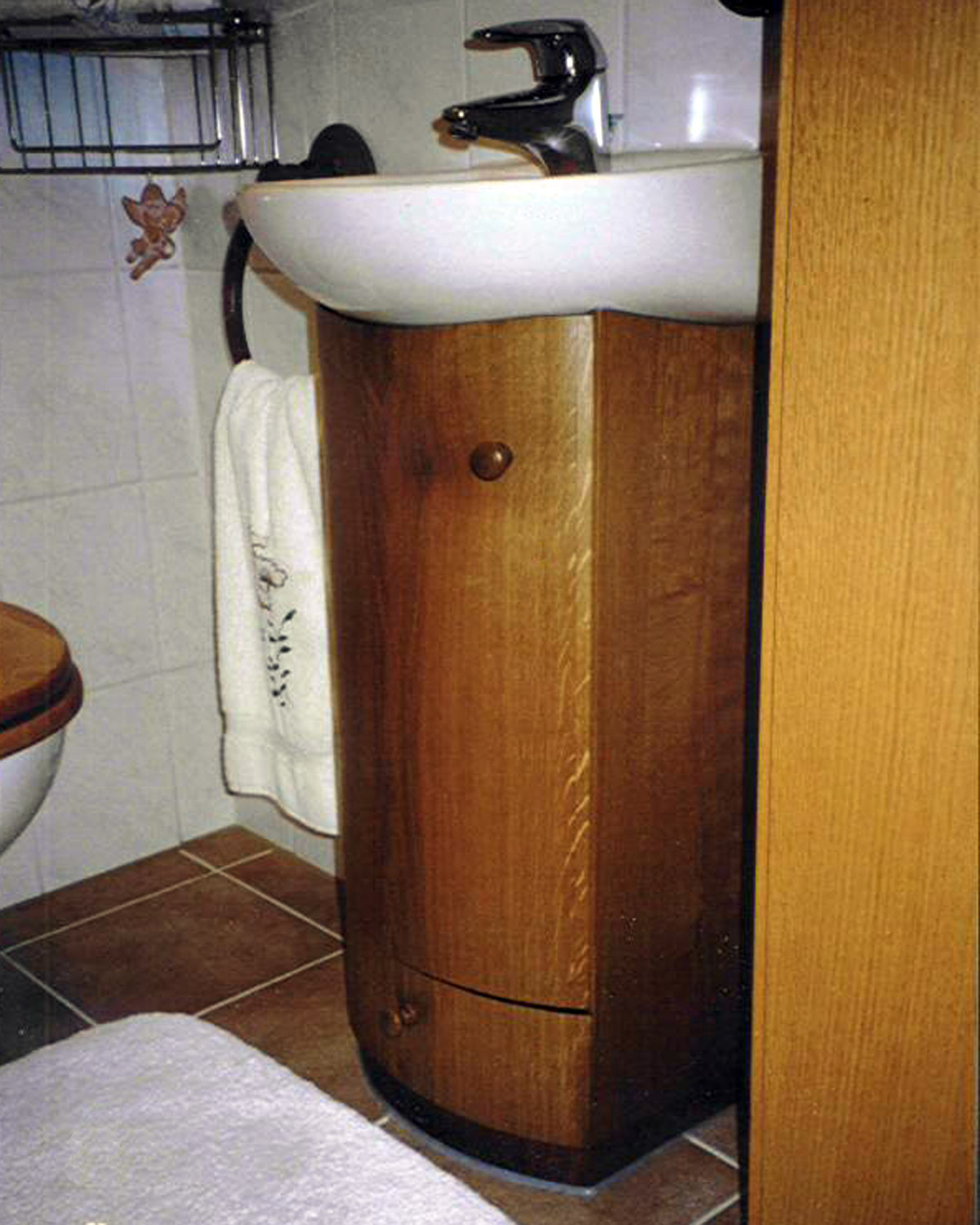 Waschbecken-Unterschrank aus massiver Eiche
